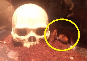 恋のスベスベマンジュウガニもいますので、えぇ、ぜひ! 写真はゴライアスバードイーターという蜘蛛なんですが、シャイな子だったようで、お尻しか見せてくれませんでした。 タランチュラといっしょで、足に毛がもさもさ生えてましたよ。 あと、この子の水槽だけステキな髑髏が一緒に飾ってあったのは、誰の仕業でしょうか。隣の蠍にはなかったのに、蜘蛛だけ優遇ですね。 PR |